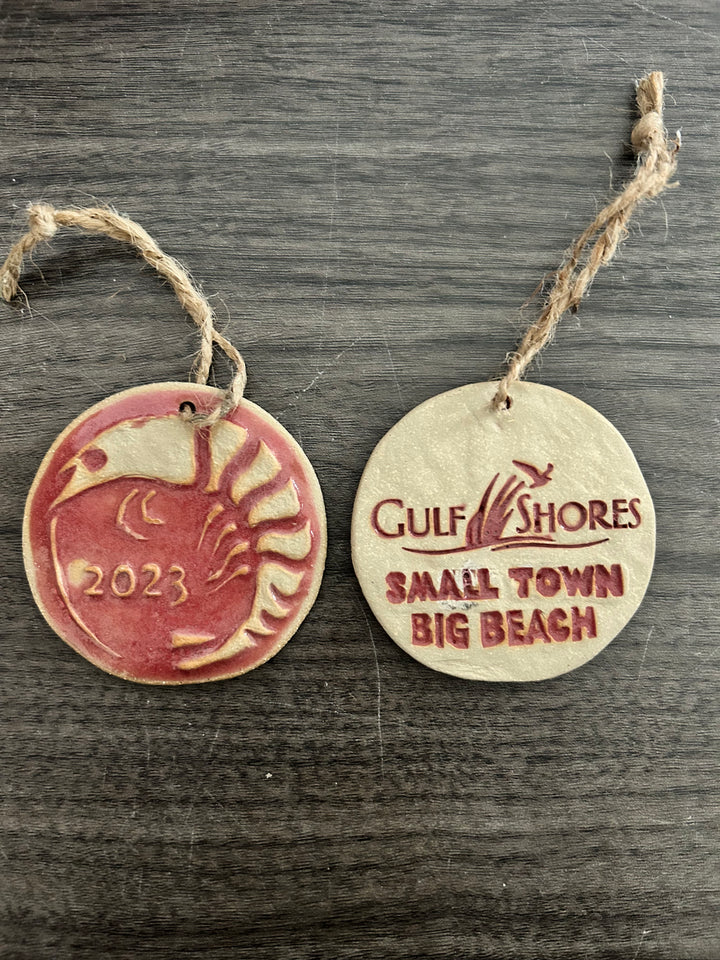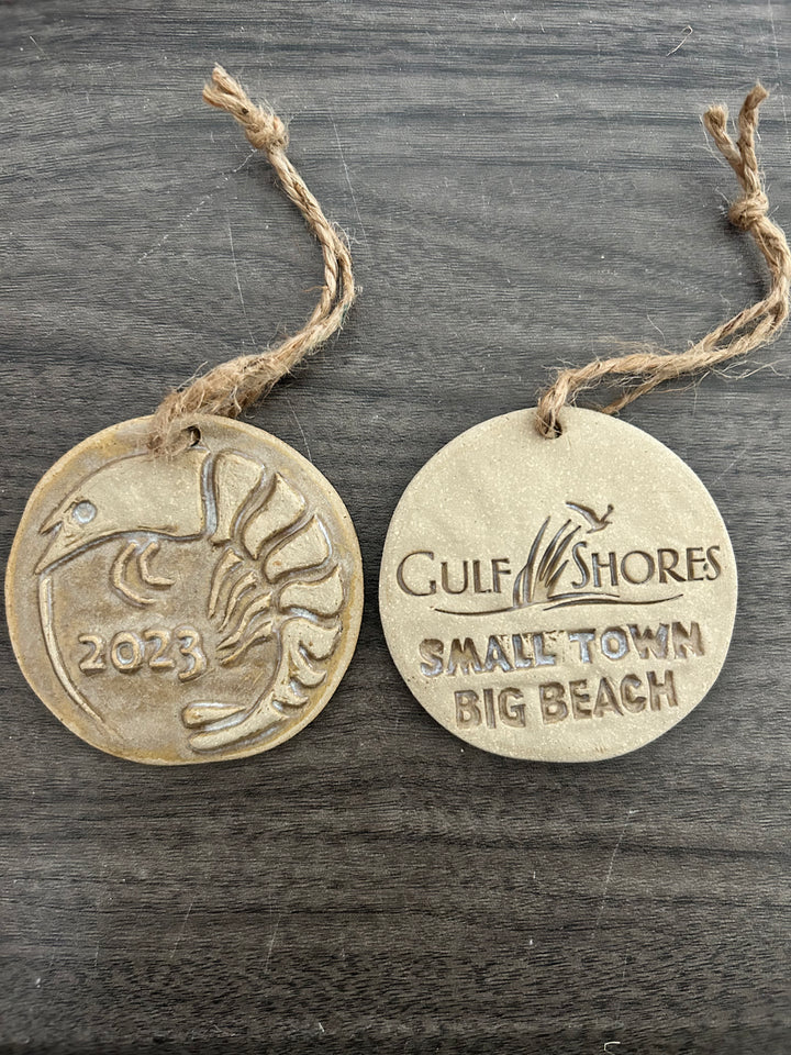 Celebrate the season with the Limited Edition 2023 Gulf Shores Christmas Ornament inspired by the 50th Annual Shrimp Festival! Each piece is handcrafted, stamped with the official Gulf Shores logo, and created exclusively for this milestone.