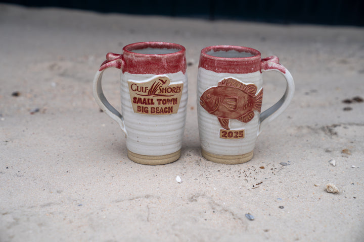 Celebrate the season with our 2025 Limited Edition Gulf Shores Christmas Mug! Each mug is lovingly handcrafted by potters Steve & Dee Burrows of Sea Oat Studio. Made from in-house clay and fired in their custom kilns, every piece captures the heart of Alabama artistry. Beautiful, durable, and truly one-of-a-kind - once they're gone, they're gone!