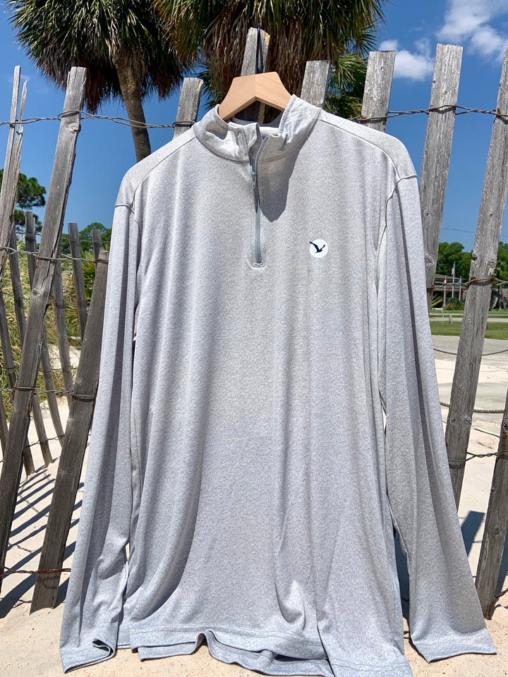 Stay comfortable in any season with this sleek and versatile Gulf Shores quarter-zip. Designed with a smooth, breathable fabric and our minimalist seagull logo, it's perfect for layering on cool mornings, breezy evenings, or everyday wear.