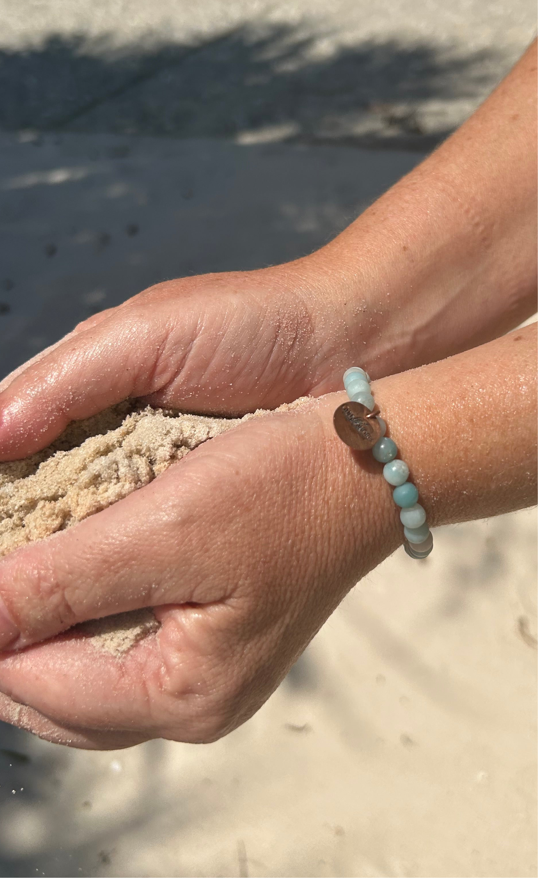 This Gulf Shores Amazonite Bracelet, handmade locally by Blue Girl Beading Co., brings soft coastal colors and easy everyday wear. Each bracelet features real Amazonite and lava beads, along with a copper disc stamped with the official Gulf Shores logo. Each piece is handmade and may vary slightly, making every bracelet uniquely yours.