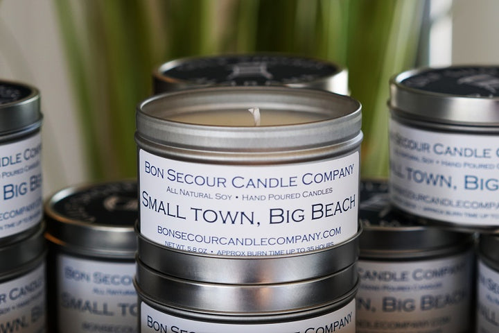 Bring the essence of Gulf Shores home with our locally crafted Bon Secour Candle Company tins. Each candle is hand-poured with all-natural soy and blended to capture the charm of our beach town. Available in four fragrant scents, these long-lasting candles fill any space with coastal calm and warmth. Perfect as gifts, souvenirs, or a little treat for yourself - light one and let the Gulf Shores vibe glow.