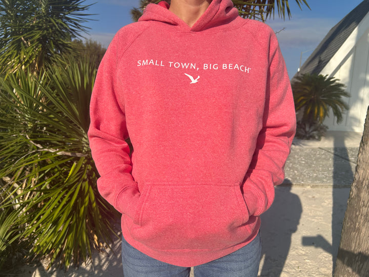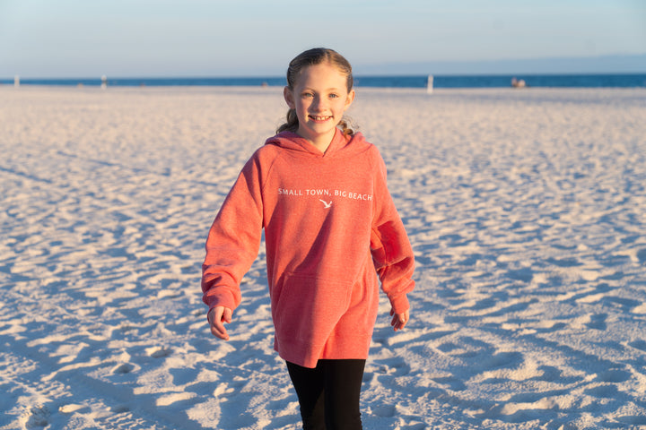 Keep your little one warm and beach-ready with our Youth Hooded Sweatshirt! Made from a soft, plush fleece, this comfy pullover is perfect for cool mornings, chilly evenings, and everything in-between. The colors add a fun pop, while the simple coastal graphic keeps it classic. Snuggly, durable, and full of small-town charm, this hoodie will be their new go-to layer all year long!