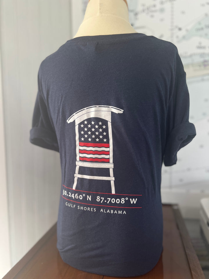 Let your little one show off their Gulf Shores pride with this adorable patriotic lifeguard tee! Featuring a bold red, white, and blue design and the exact Gulf Shores coordinates, this soft t-shirt is sure to bring a splash of beach spirit to any outfit. Perfect for summer days, family photos, or holiday celebrations - your mini beach lover will love cute, comfy, and coastal all at once.